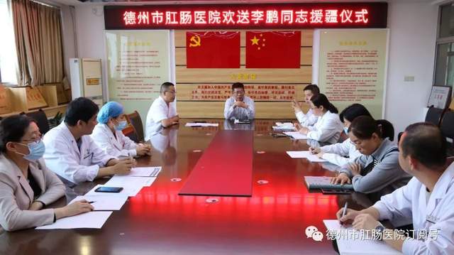 2023年5月9日下午,德州市肛肠医院为肛肠二科主治医师李鹏举行了援疆干部欢送仪式,医院领导班子成员和临床、职能科室负责人参加。