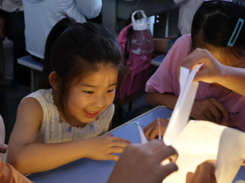 在“萤火流星雨”活动中,维生素B2片溶解于矿泉水,强光手电照射下,黑暗中瞬间涌现细碎光点,如微缩流星缓缓流动。“哇,真的像天上的流星!”孩子们惊呼围拢,眼睛紧紧盯着这奇妙景象。实践团成员通过讲解生物荧光原理与光的散射知识,从“为什么维生素B2能让水‘发光’”到“真正的流星雨是怎么形成的”,将生物、天文知识融入趣味实验。孩子们不再是知识的被动接受者,而是主动观察者、提问者,当理解到“原来生活里的小药片,也能变出宇宙的浪漫”时,他们眼中闪烁的,是对科学融合之美的全新认知。